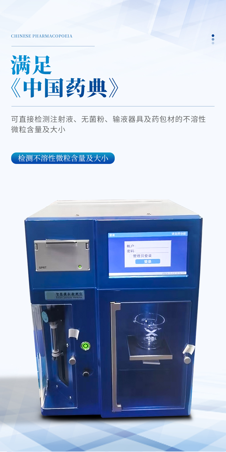 ●滿足2015版《中國藥典》可直接檢測注射液、無菌粉、輸液器具及藥包材的不溶性微粒含量及大小