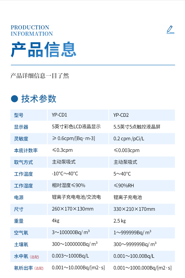 6. 測(cè)量范圍:0.1~25000pCi/L (3.7Bq/m3~925000Bq/m3);