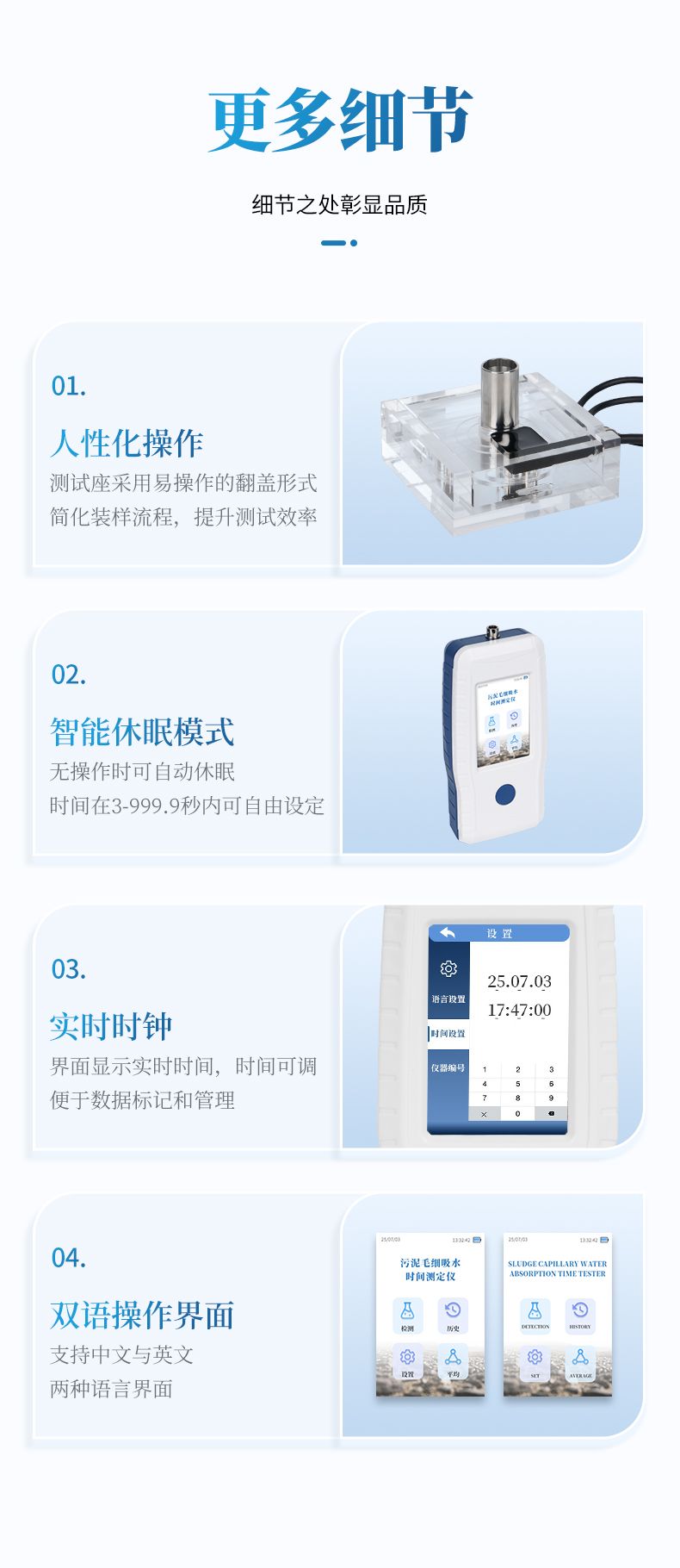 高精度測量:測量精度高達0.1秒,能夠精準捕捉污泥脫水特性的細微變化。