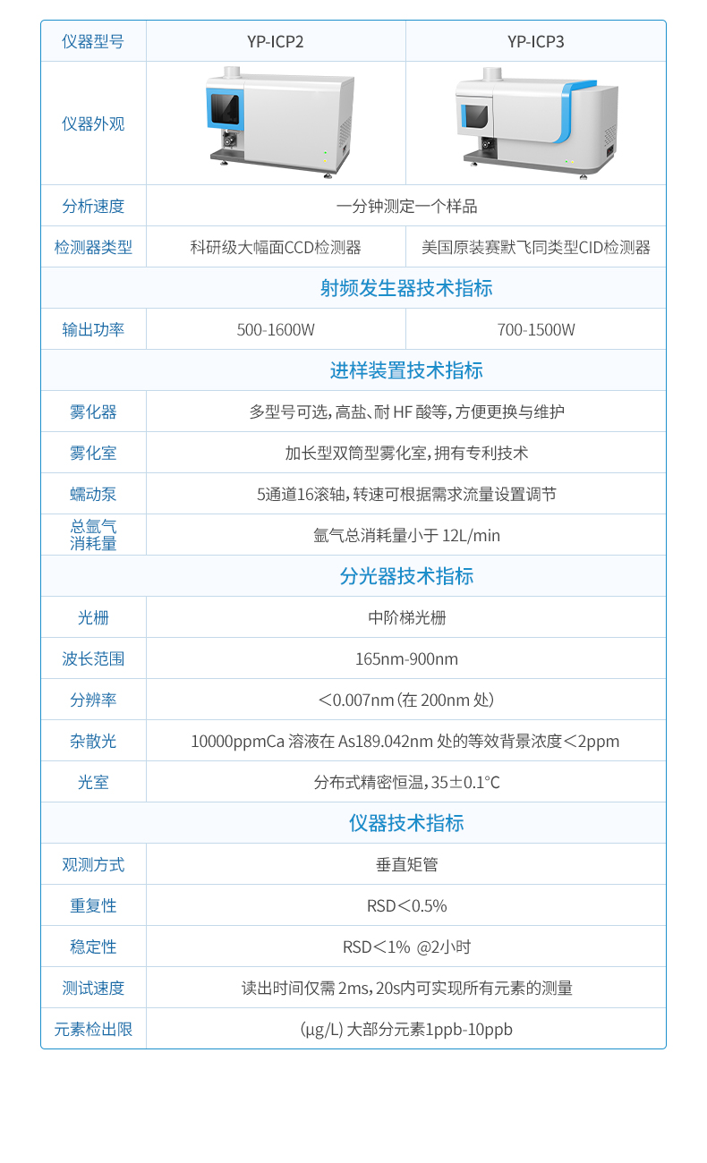電感耦合等離子體發射光譜儀是以高靈敏度光電倍增管為檢測器的微量元素成分分析測試儀,測試近70余種元素,擁有固態射頻發生器、自動調諧匹配技術;配置專用循環冷卻水系統、氬氣導管、冷卻水管、高靈敏度進樣系統(高效霧化器加雙筒型霧化室)。