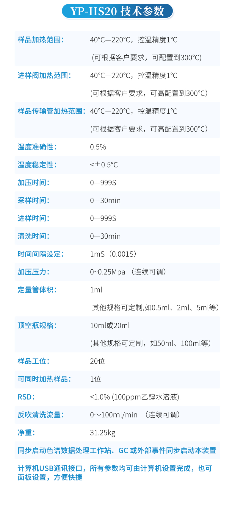 ●頂空瓶加熱范圍:室溫~240℃,以增量1℃任設;