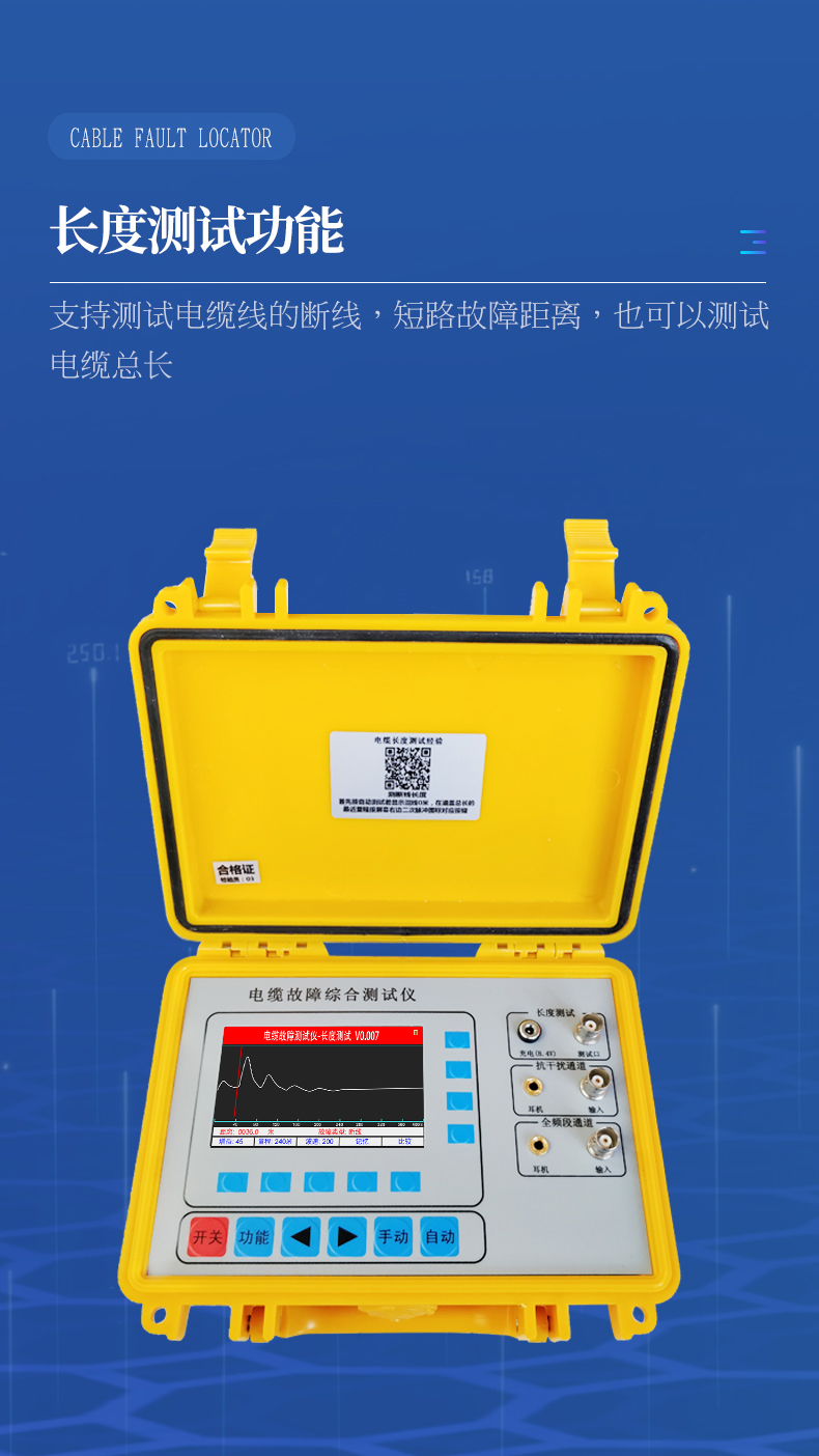 1、長度測(cè)試:斷電狀態(tài)下可以直接測(cè)試電纜的斷線、短路故障距離長度。