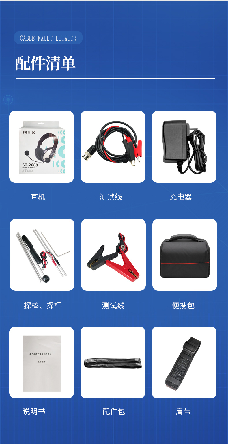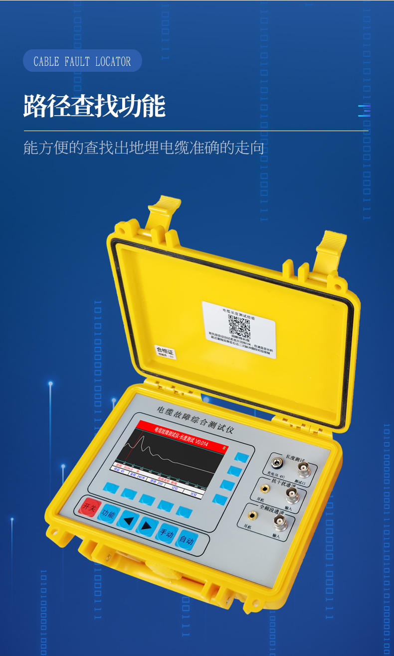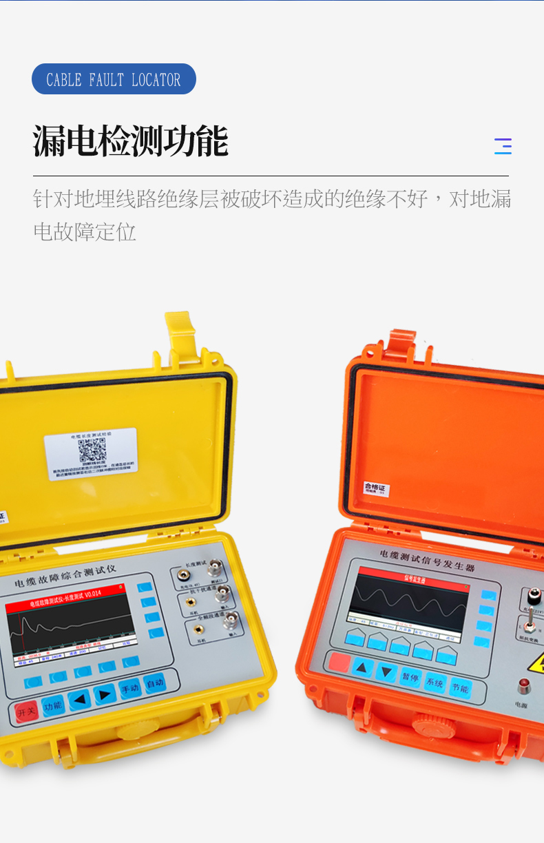 本測(cè)試儀主要用于10KV等級(jí)(可拓展至50kv)以內(nèi)的高低壓地埋電力電纜的斷線、短路、對(duì)地漏電故障( 對(duì)地絕緣電阻在0.5兆歐以內(nèi))的定位及地埋電纜深度、路徑走向的探測(cè)。