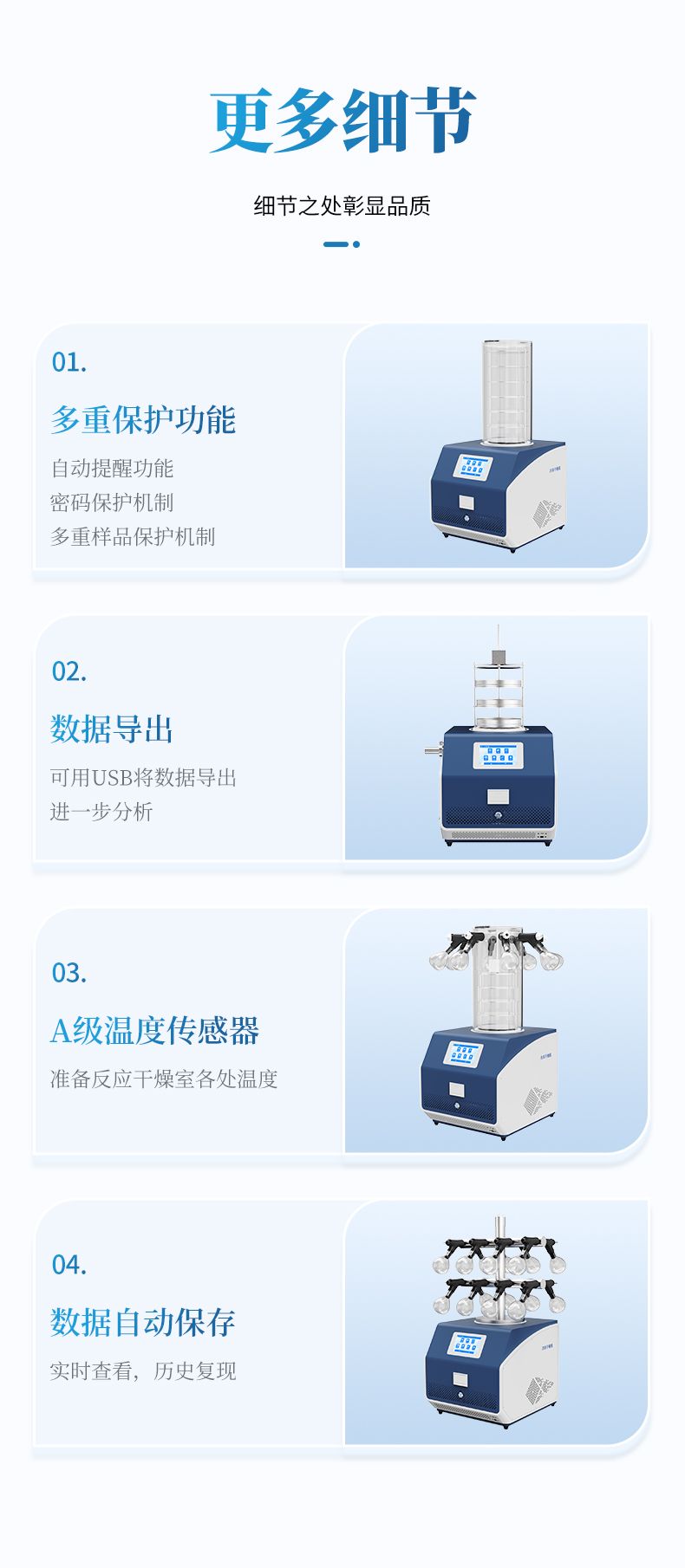(6) 多重樣品保護(hù)機(jī)制,如冷阱溫度過(guò)高時(shí),禁止真空泵啟動(dòng),避免樣品沸騰而被破壞。