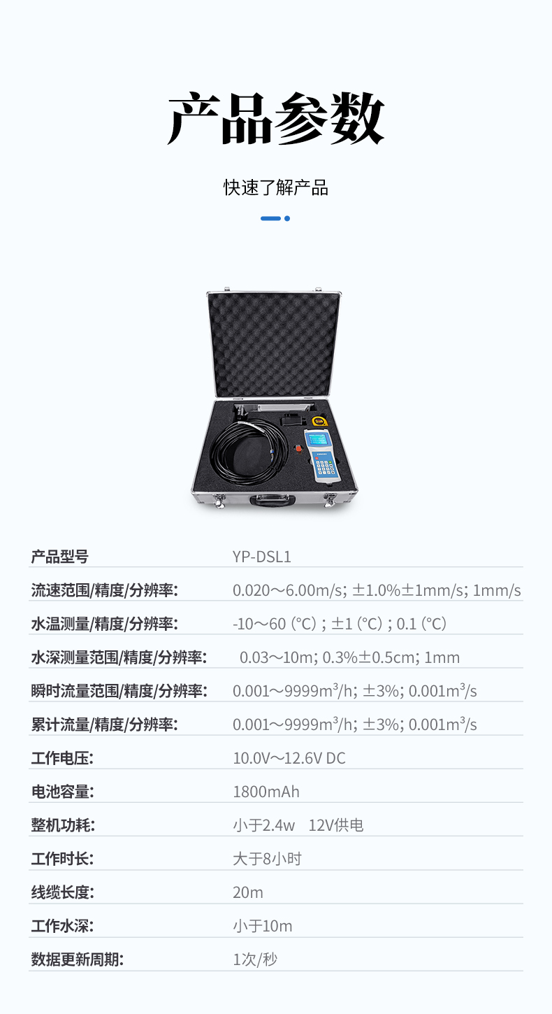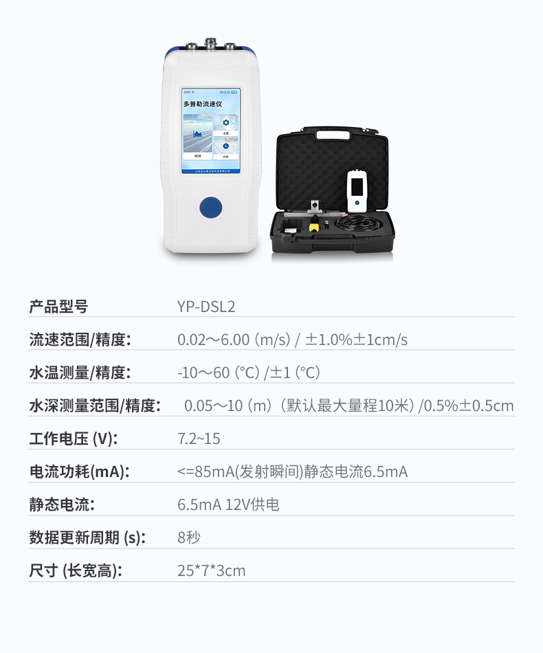 | 水深測量范圍(m) | 0.05~10(默認最大量程10米) | 0.5%±0.5cm |