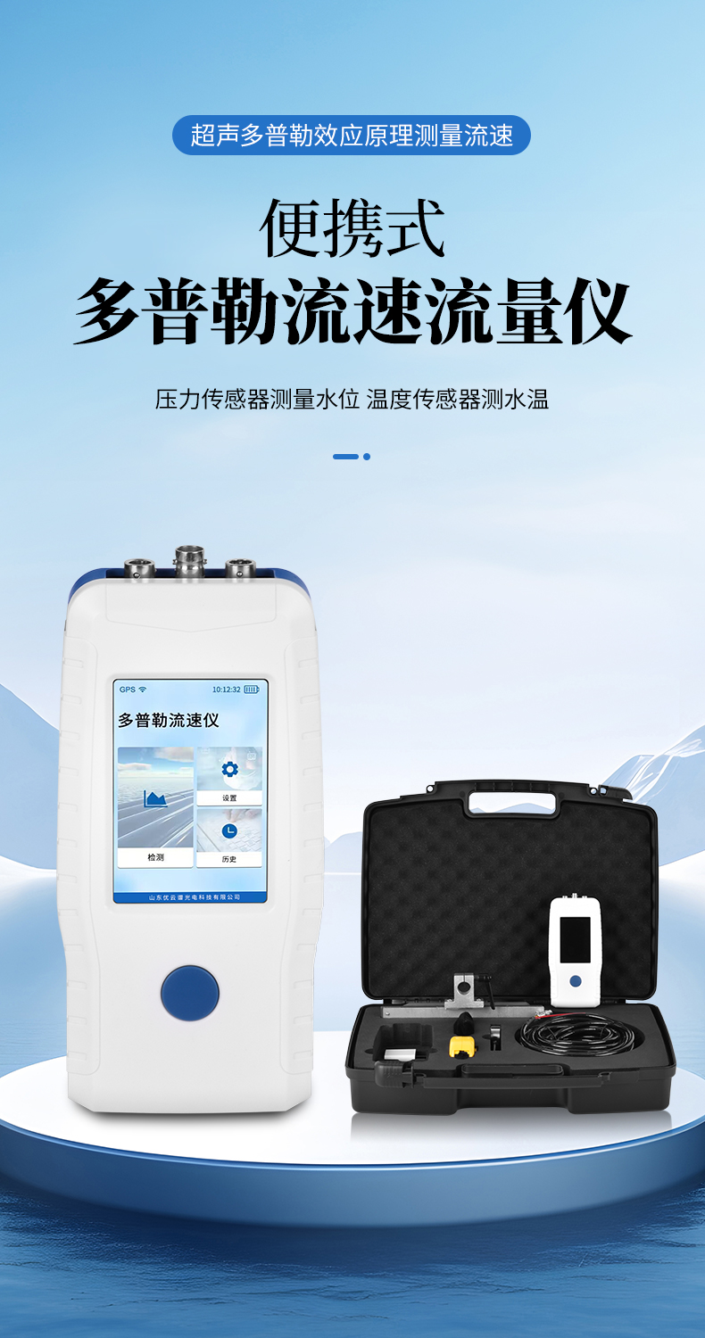 多普勒流速儀原理:當超聲波聲源和觀察者做相對運動時,觀察者接收到的頻率就會和超聲波聲源頻率不同。因此,相對于超聲波換能器的隨水移動的小顆粒、小氣泡也會使換能器接收頻率改變,且隨水中懸浮運動速度的增加而增加, 由 此測出多普勒頻移,也就測出了多普勒流速儀所處點水的流速。 主要用于灌溉明渠,市政下水管道,水文流域等場合。特別適合低水位的場 合,水位超過 15 厘米就可以工作。在規則的管道、渠道,通過流速儀上的壓力 傳感器測得水深,超聲傳感器測得流速,可以方便地計算出流量。