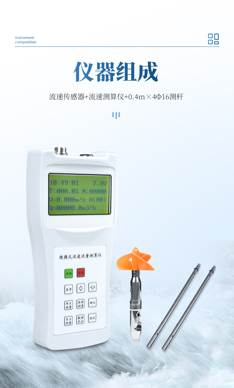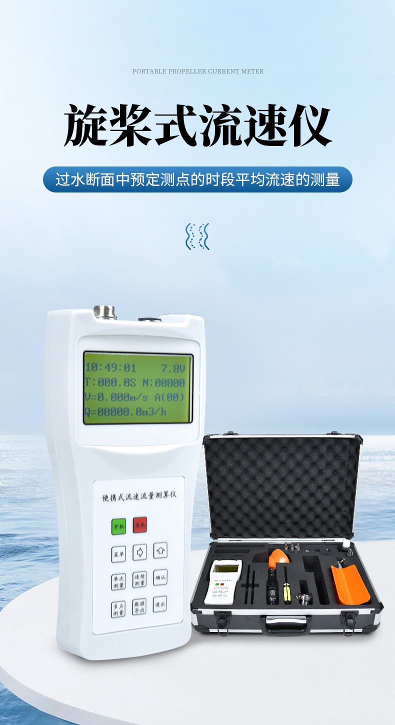 流速流量測(cè)算儀(簡(jiǎn)稱便攜式流速儀)是一種在水文測(cè)驗(yàn)中進(jìn)行流速測(cè)量的通用型儀器,用于江河、湖泊、水庫(kù)、水渠等過(guò)水?dāng)嗝嬷蓄A(yù)定測(cè)點(diǎn)的時(shí)段平均流速的測(cè)量。