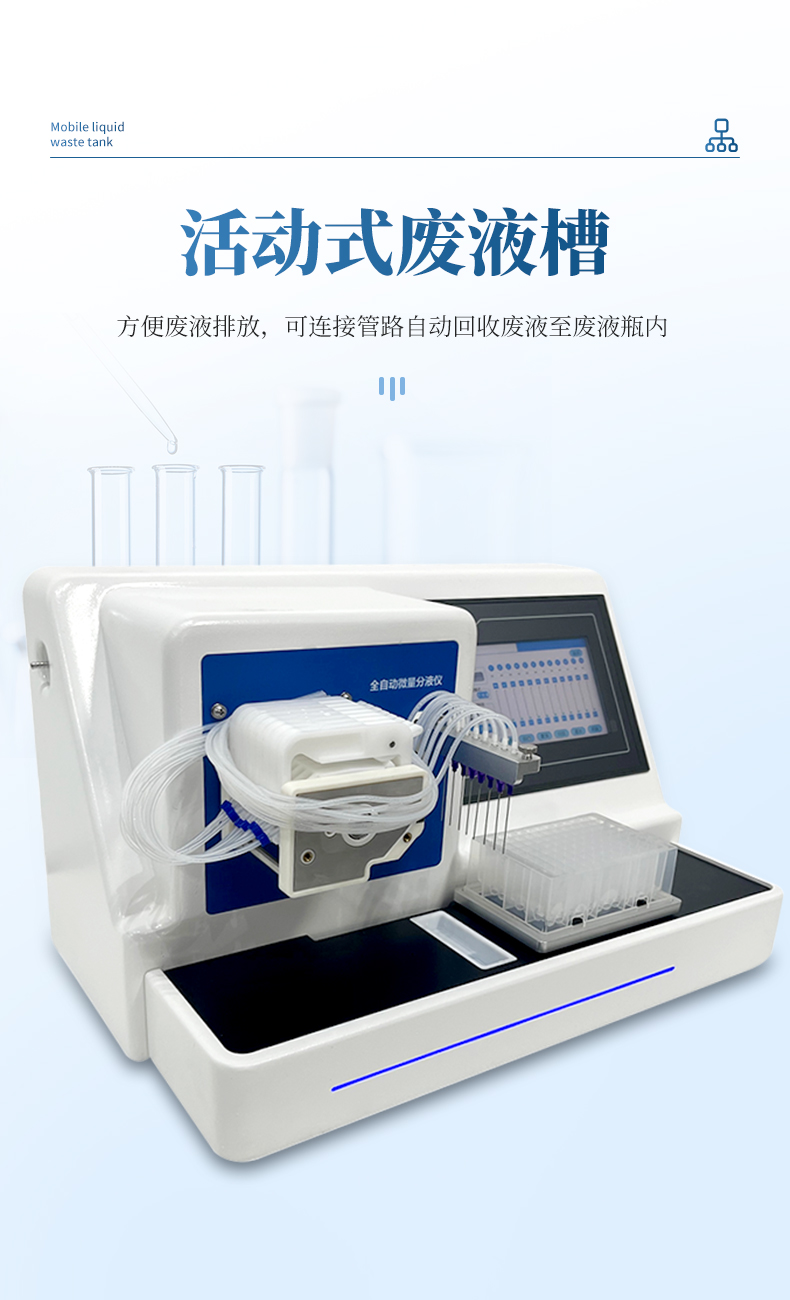 5、活動式廢液槽,方便廢液排放,可連接管路自動回收廢液至廢液瓶內。