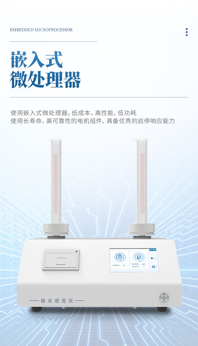 振實密度儀是一種通過模擬實際工況中的振動條件,精確測定粉末或顆粒材料在振實狀態下密度的高精度儀器。其核心功能是評估材料在壓實過程中的體積變化,為工業生產、研發和質量控制提供關鍵數據支持。