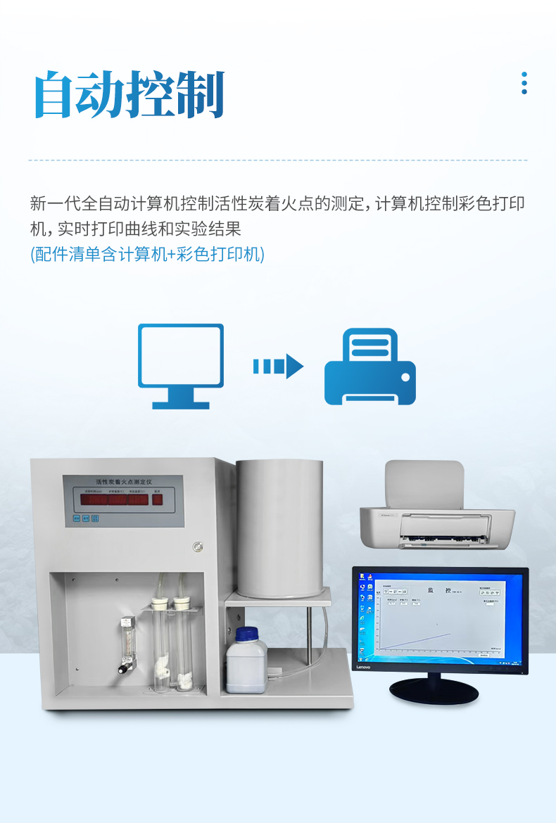 全自動活性炭著火點是我公司最新研發的新一代全自動計算機控制活性炭著火點的測定儀器,具有計算機軟件界面清晰,表現全面,操作簡單的特點,符合“GBT7702.9煤質顆粒活性炭試驗方法-著火點的測定”國標要求。活性炭著火點測定儀軟件自帶數據庫功能,實驗過程自動記錄各個時間點相對應的溫度點,使用者可實驗后對當前實驗活性炭的著火點特點進行數據分析。