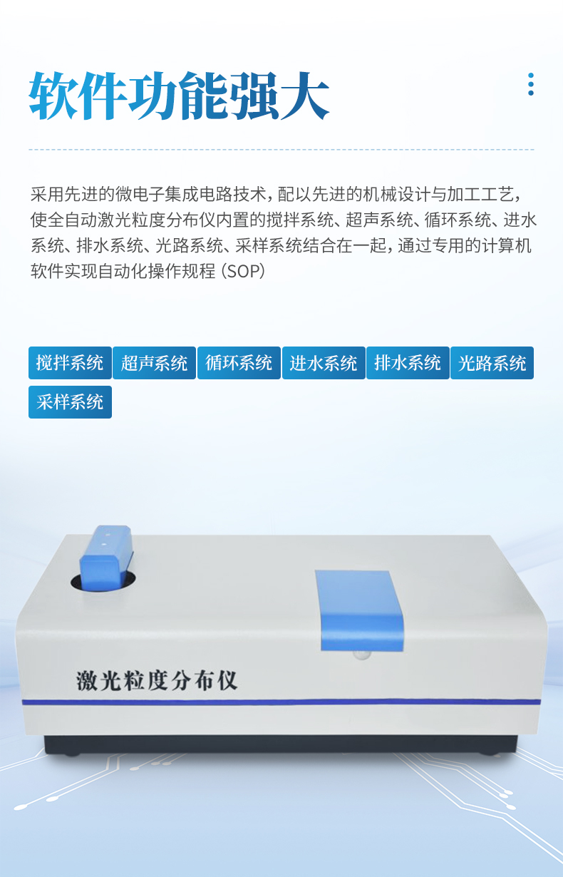 激光粒度分布儀系統是集光、機、電、計算機為一體的高科技產品,數據處理有專用的計算機軟件完成。