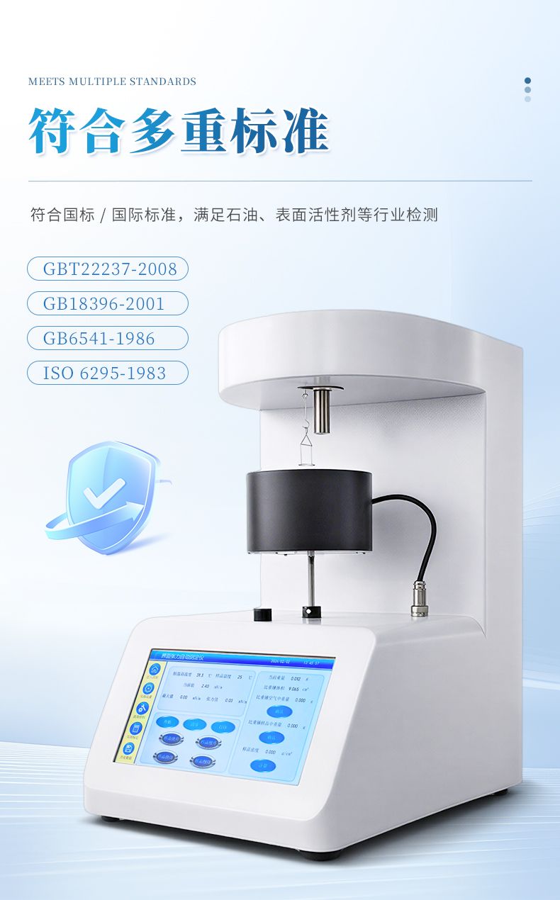 本儀器是一款用于測定表面張力、界面張力及液體密度的專用檢測設(shè)備,嚴(yán)格符合多項(xiàng)國家及國際標(biāo)準(zhǔn)要求,可廣泛應(yīng)用于石油產(chǎn)品、表面活性劑、天然膠乳等各類樣品的相關(guān)指標(biāo)檢測。具體符合標(biāo)準(zhǔn)包括:GB6541-1986《石油產(chǎn)品油對(duì)水界面張力測定法》(圓環(huán)法)、GB/T22237-2008《表面活性劑 表面張力的測定》、GB18396-2001《天然膠乳 環(huán)法測定表面張力》、ISO 6295-1983《石油產(chǎn)品、礦物質(zhì)潤滑油 油對(duì)水的界面張力的測定 圓環(huán)法》等。