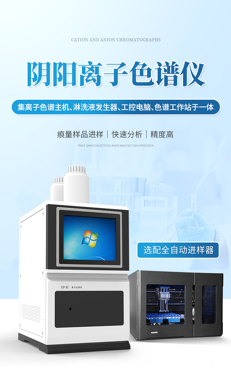 YP-IC+離子色譜分析儀核心零部件自主研發(fā)、自主知識(shí)產(chǎn)權(quán)可控。采用一體化設(shè)計(jì),集離子色譜主機(jī)、淋洗液發(fā)生器、工控電腦、色譜工作站于一體,結(jié)構(gòu)緊湊,流路最短,對(duì)流路造成的峰型擴(kuò)展有很好的改善。一體化恒溫箱:色譜柱、抑制器、電導(dǎo)池、放大電路都處于同一恒溫系統(tǒng),改善了電導(dǎo)檢測(cè)器的溫飄和基線噪聲。內(nèi)置多處漏液報(bào)警器和缺水報(bào)警器,多方位安全監(jiān)控。由PLC控制的各個(gè)部件統(tǒng)一到電腦顯示屏的集中軟件控制系統(tǒng),操作方便,鼠標(biāo)所見(jiàn)即所控。
