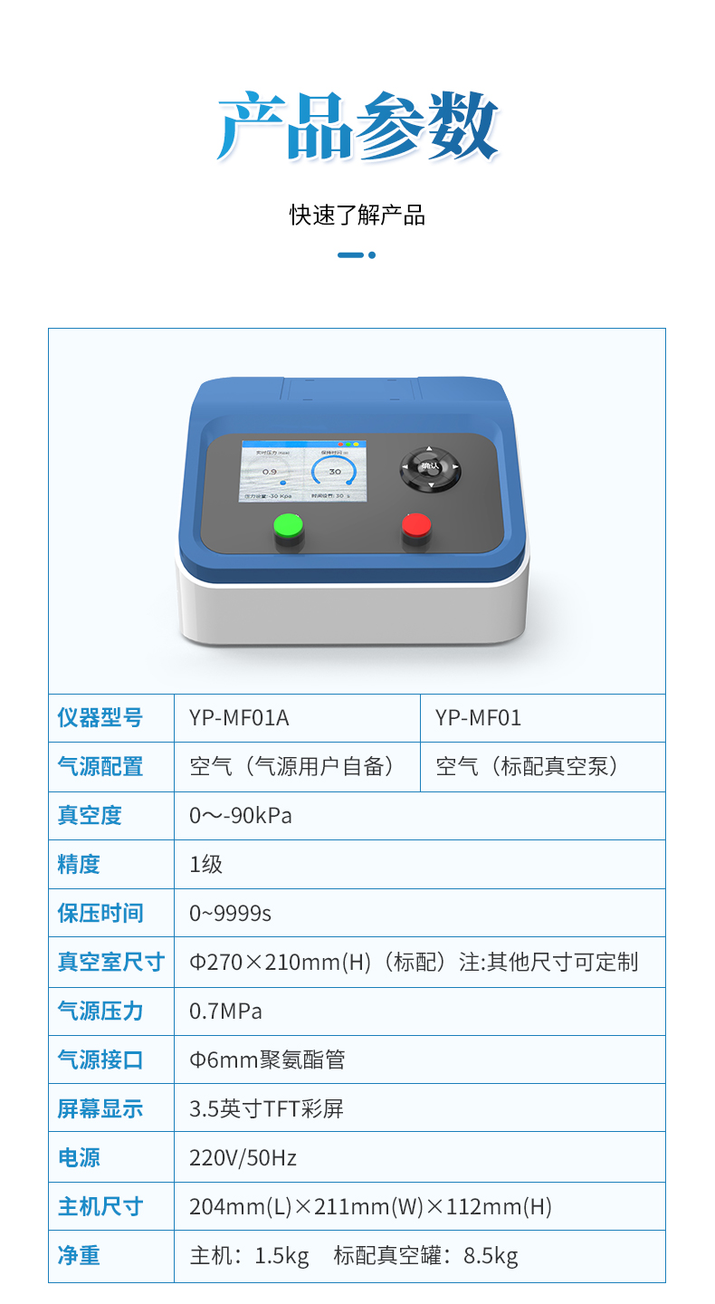 2.自動恒壓補氣,進一步確保測試能夠在預設的真空條件下進行,抽壓、保壓、補壓、計時、反吹、存儲、打印全自動化一鍵操作;