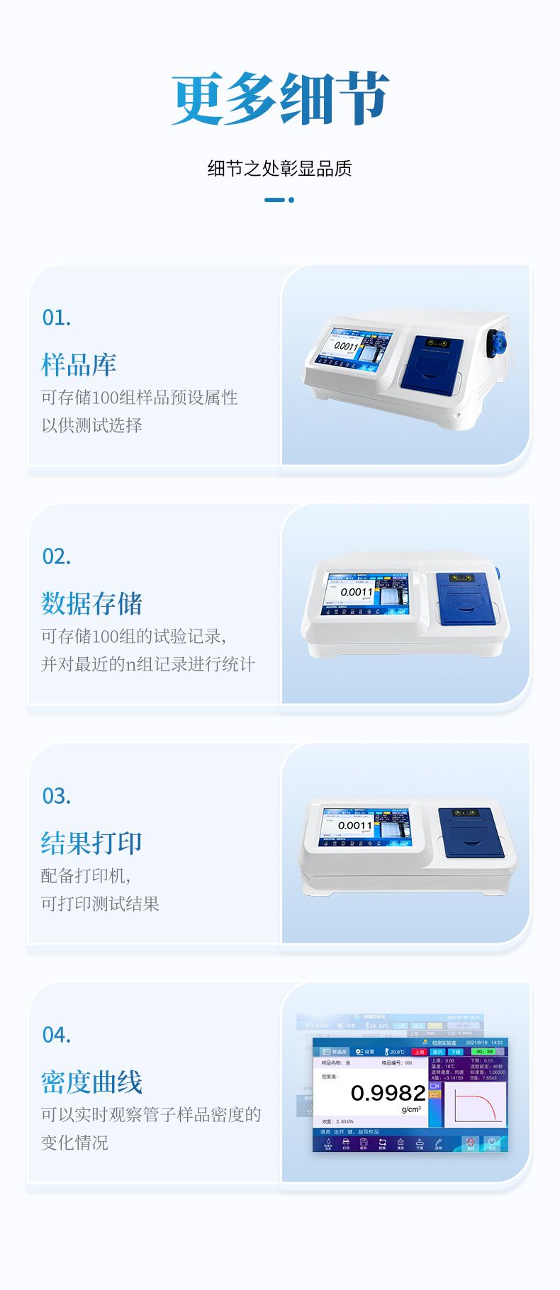 【產品簡介】"重復性g/cm3:±0.001;分辨率g/cm3:0.0001;測量范圍g/cm3:0.0000~1.9999"
