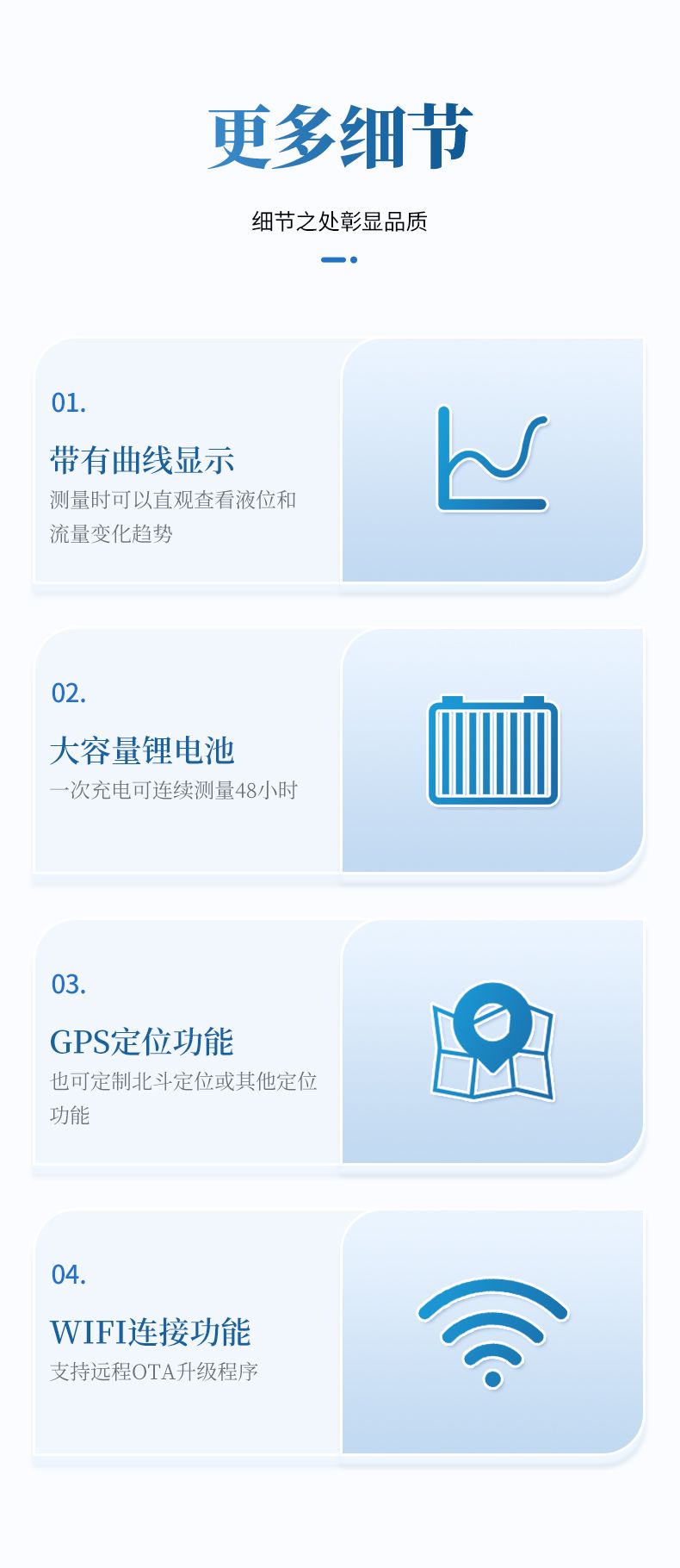 1、適用于三角堰、矩形堰、等寬堰和巴歇爾槽四種堰槽類型;