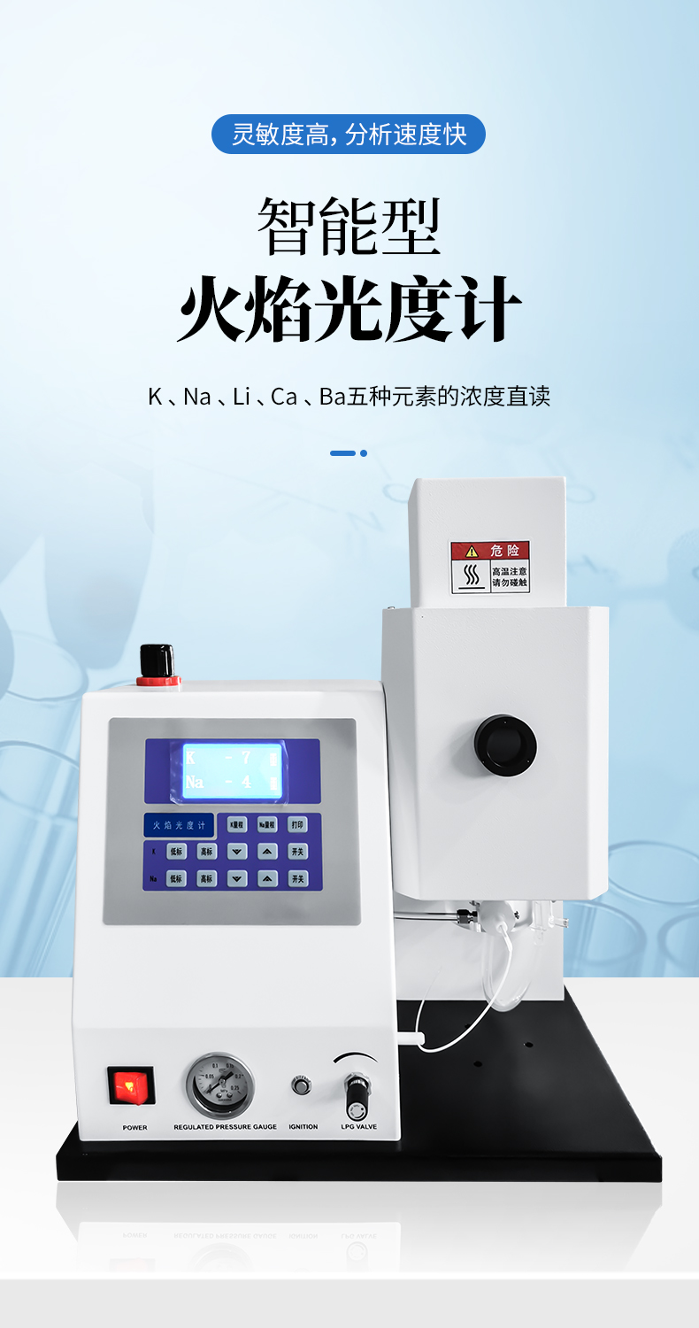 YP系列多元素火焰光度計是全新設(shè)計的儀器。它具有體積小、操作方便及穩(wěn)定可靠的優(yōu)點。全系列都標配離子檢測熄火保護裝置,安全可靠。廣泛應(yīng)用于農(nóng)業(yè)肥料、土壤、水泥、陶瓷等行業(yè)及硅酸工業(yè)的分析和測定;醫(yī)療衛(wèi)生的病理研究。YP系列火焰光度計使用液化氣為燃氣。
