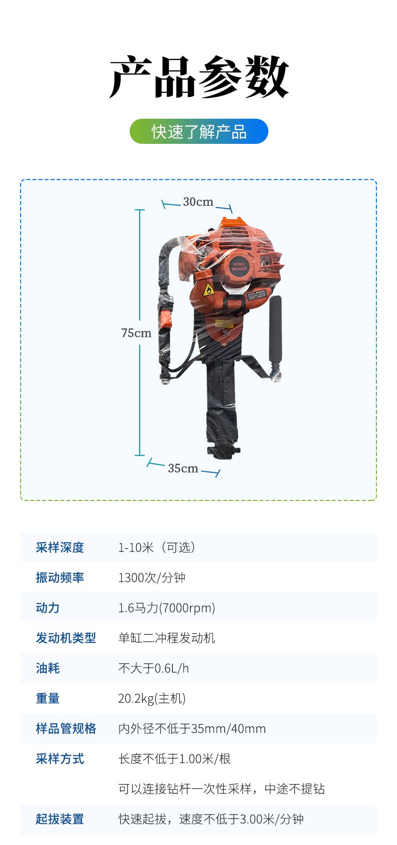 8、采樣深度,可以連接鉆桿一次性采樣,中途不提鉆