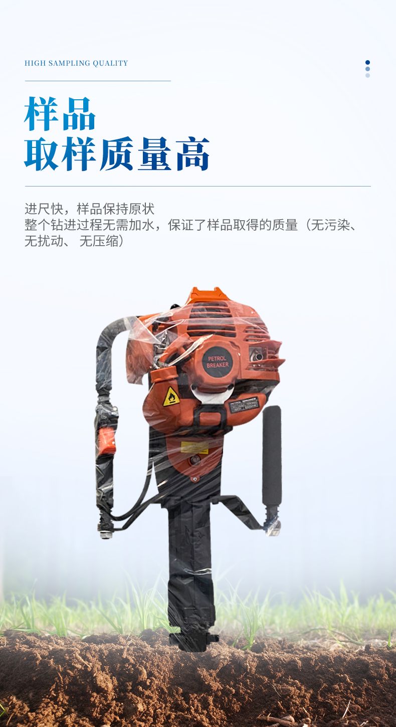 YP-QY800單人手持式土壤取樣鉆機是在參考大型液壓、汽油、氣動鉆機的基礎上設計的一款輕便的土壤采集鉆機。即使沒有操作經驗的鉆探人員,簡單培訓就可操作。取樣過程及其簡單,1到2個人即可完成設備的操作。整個鉆進過程無需加水,保證了樣品取得的質量(無污染、無擾動)。
