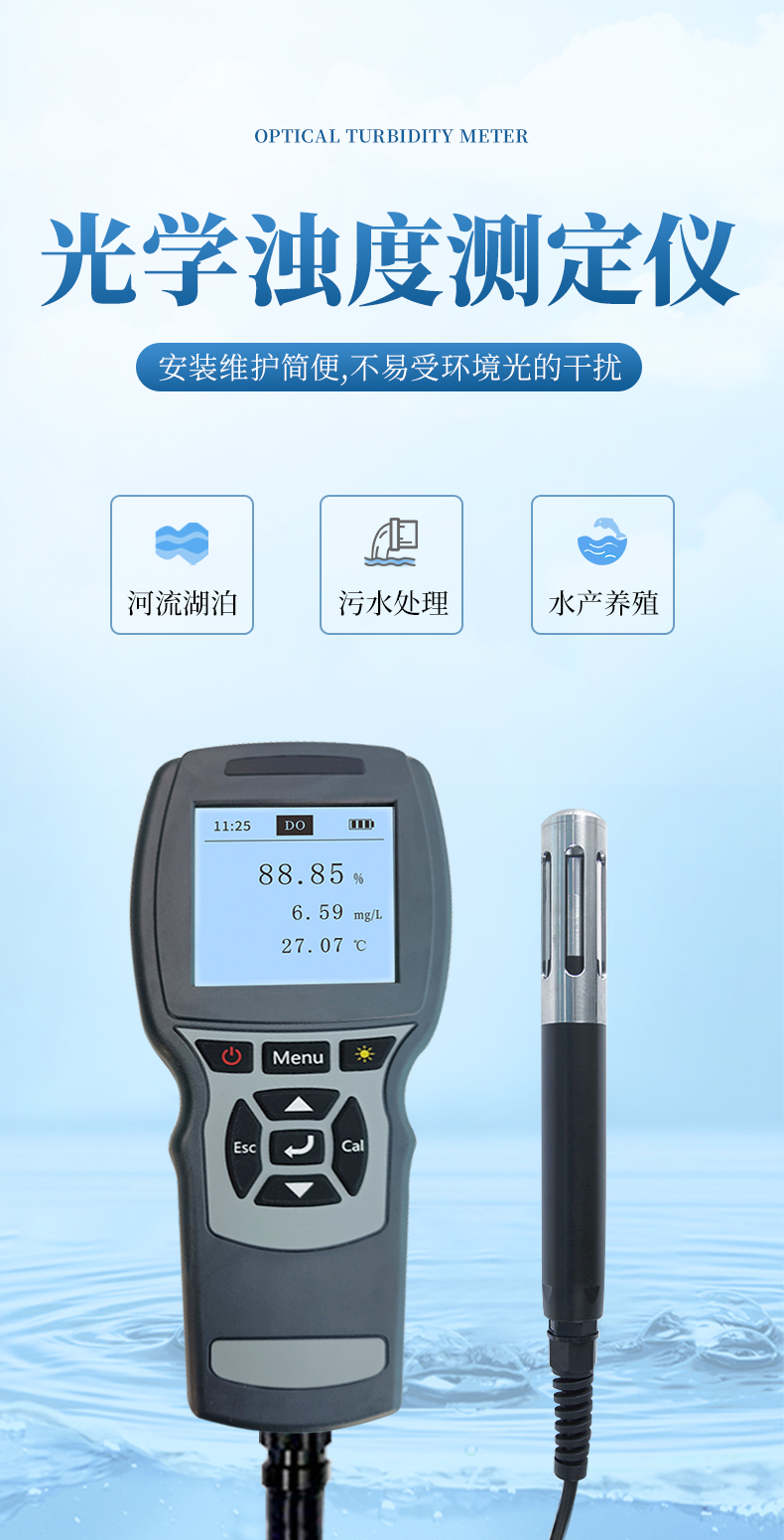 帶背光顯示和操作鍵盤,功能全面操作簡單,界面簡潔,濁度光纖傳感器自動識別,測量數據的讀取、存儲,傳感器校準等功能,并且可以 USB 數據導出,實現更多高端功能。追求高性價比是我們一貫的追求。
