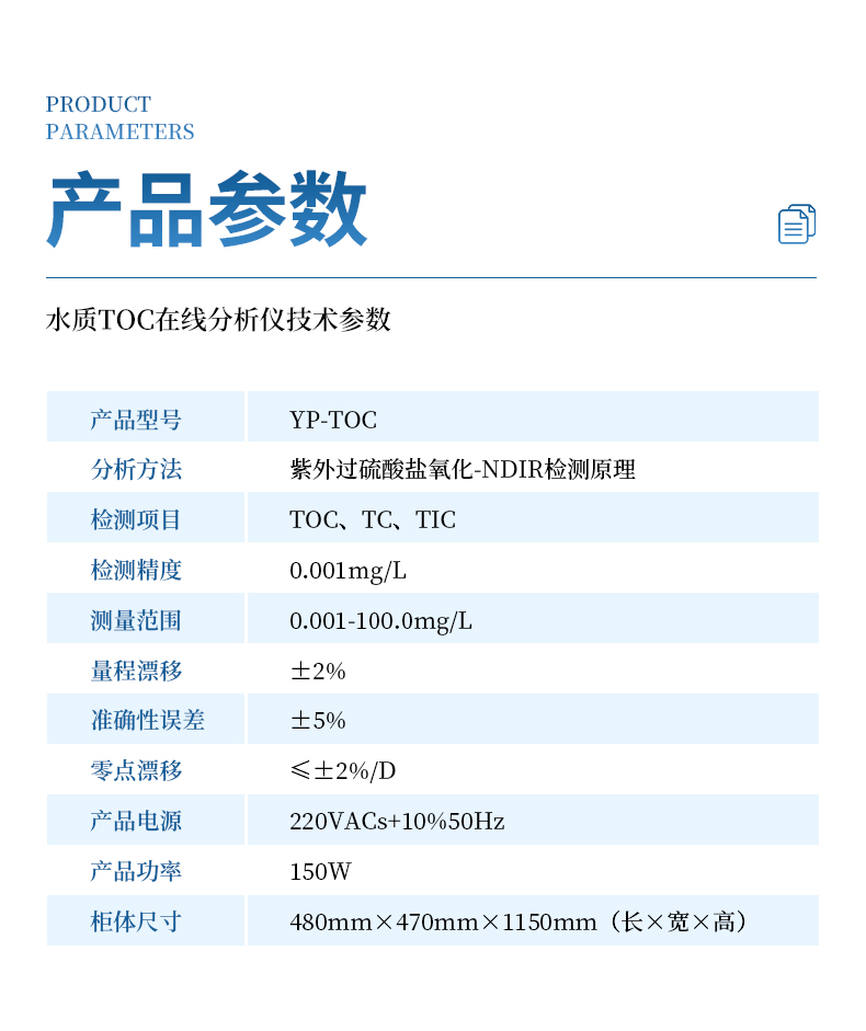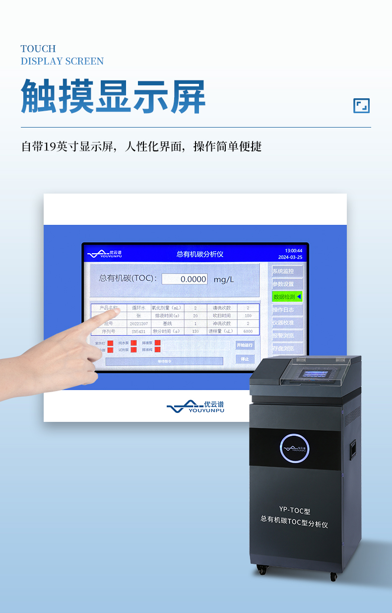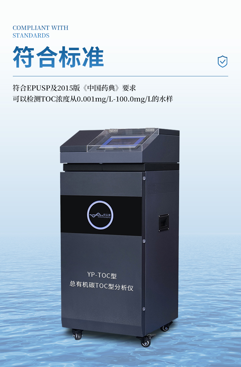 用于測定水中總有機碳濃 度,可以檢測TOC濃度從0.001mg/L-100.0mg/L的水樣,具有高靈敏度和精確度,以及良好的穩定性。符合EPUSP及2015版《中國藥典》要求