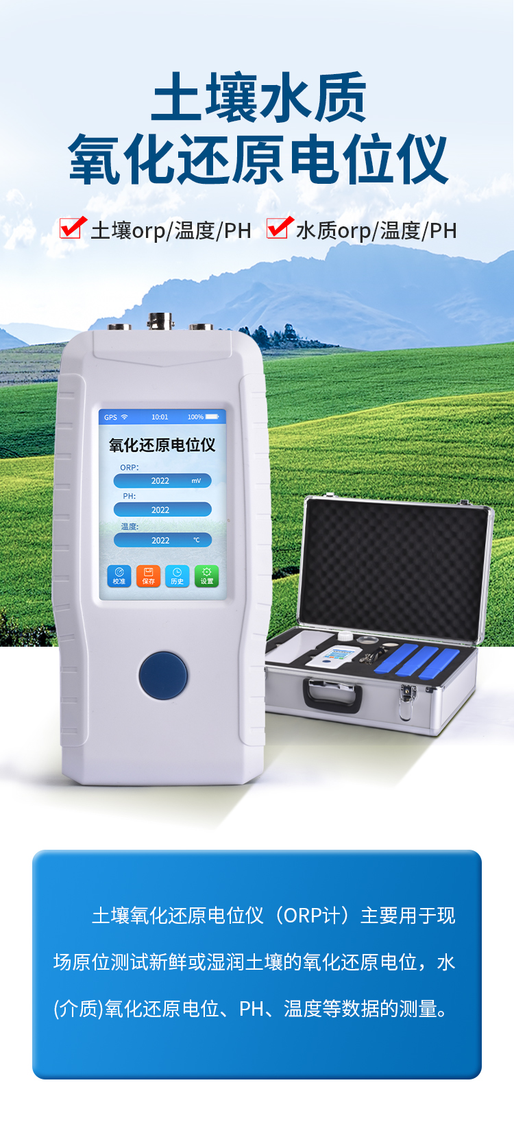 土壤氧化還原電位儀(ORP計)主要用于現場原位測試新鮮或濕潤土壤的氧化還原電位,水(介質)氧化還原電位、PH、溫度等數據的測量。符合《HJ746-2015土壤氧化還原電位的測定電位法》標準。