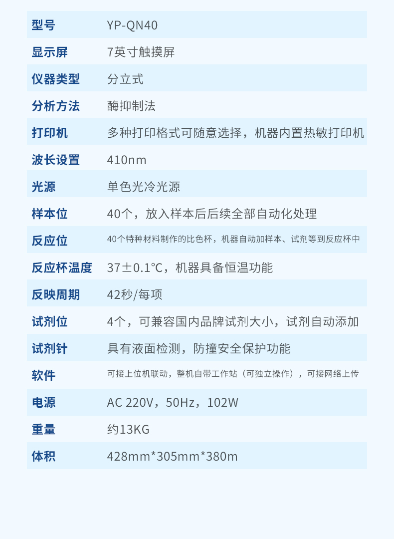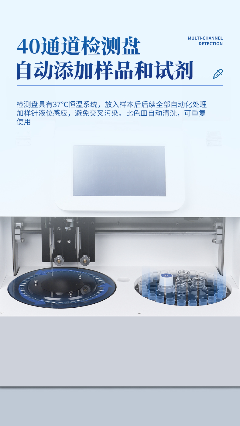 檢測盤:40通道檢測盤,比色皿容量500uL,檢測盤具有37℃恒溫系統