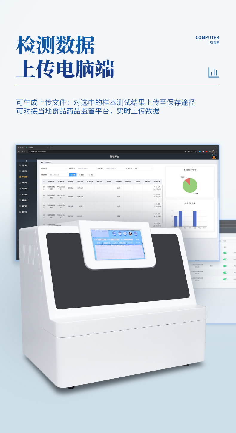 軟件:可生成上傳文件:對選中的樣本測試結果上傳至保存途徑??蓪赢數厥称匪幤繁O管平臺,實時上傳數據。
