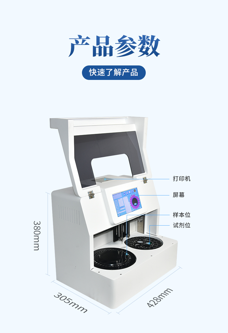 試劑位:4個,可兼容國內品牌試劑大小,試劑自動添加。