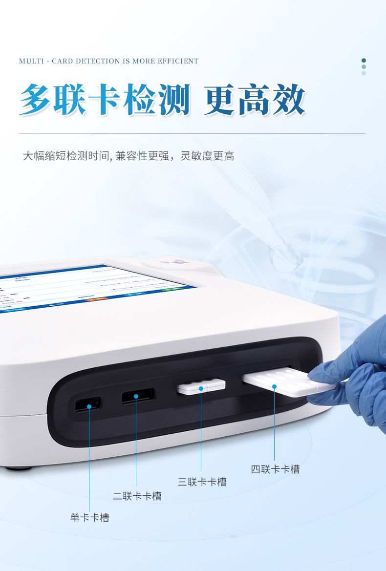 11、檢測(cè)時(shí)間:< 5秒 (單卡及多聯(lián)卡);可對(duì)樣本進(jìn)行膠體金定性/半定量檢測(cè)。