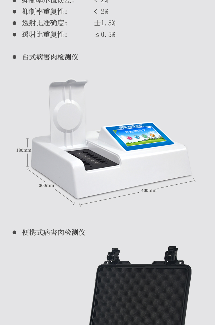 可快速檢測病害肉、組胺、揮發性鹽基氮,儀器預留其他項目檢測程序和端口,根據日后需求可方便的自主增加檢測項目。