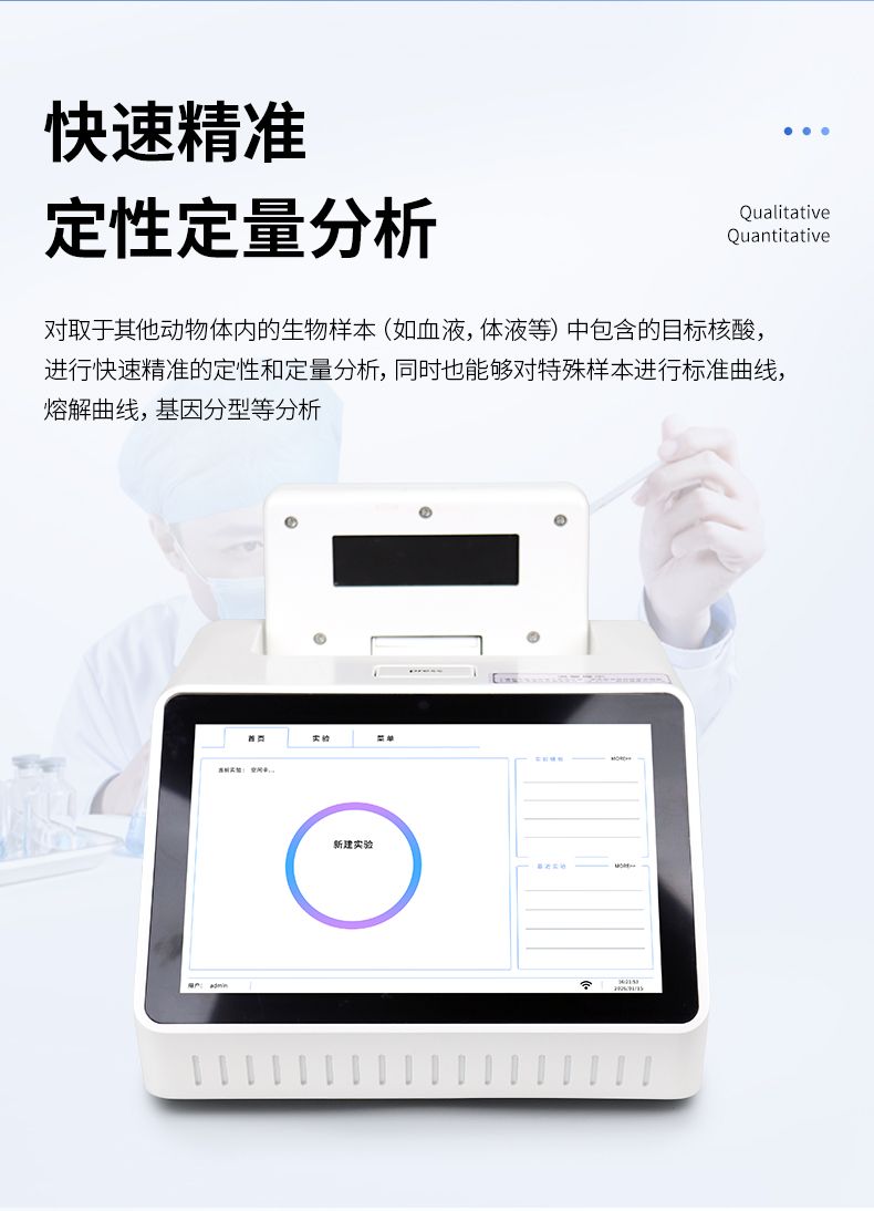 軟件功能:熒光定量 PCR 系統軟件;實時擴增反應曲線功能;特定標本實時反應曲線顯示;數據分析功能;陰陽結果自動判定功能;圖形化顯示功能。
