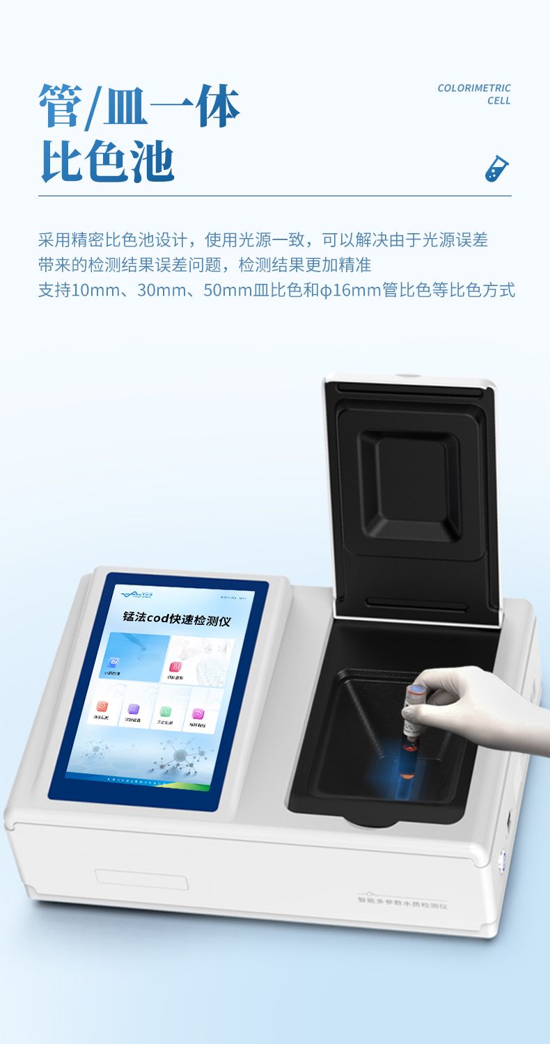 5、支持10mm、30mm、50mm皿比色和φ16mm管比色等比色方式,多元選擇,確保測(cè)量的準(zhǔn)確性;