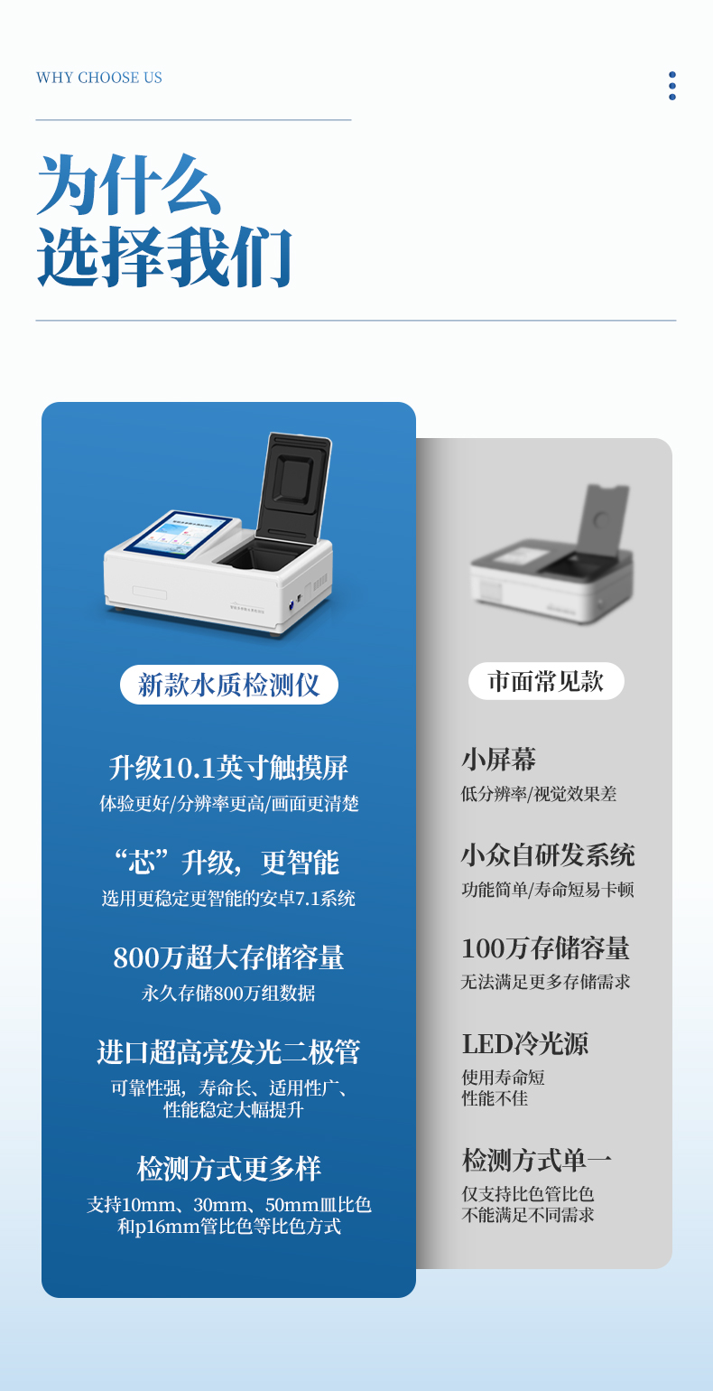3、采用精密比色池設計,使用光源一致,可以解決由于光源誤差帶來的檢測結果誤差問題,檢測結果更加精準。