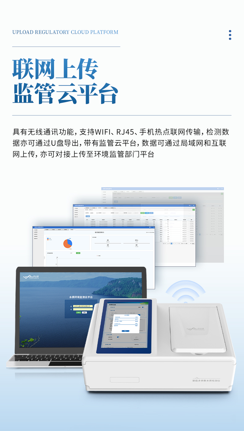 10、儀器帶有監管云平臺,數據可通過局域網和互聯網上傳,亦可對接上傳至環境監管部門平臺。