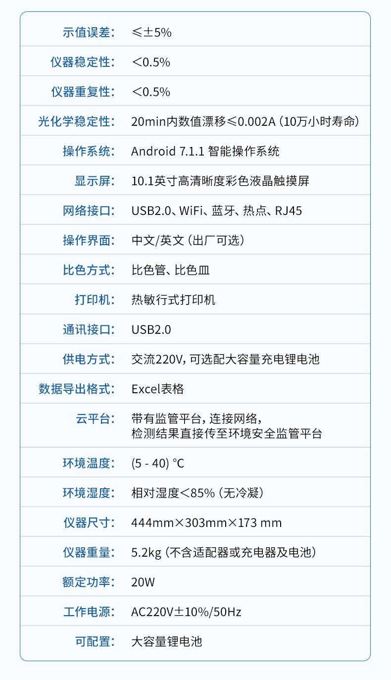 光化學穩定性:20min內數值漂移≤0.002A(10萬小時壽命);