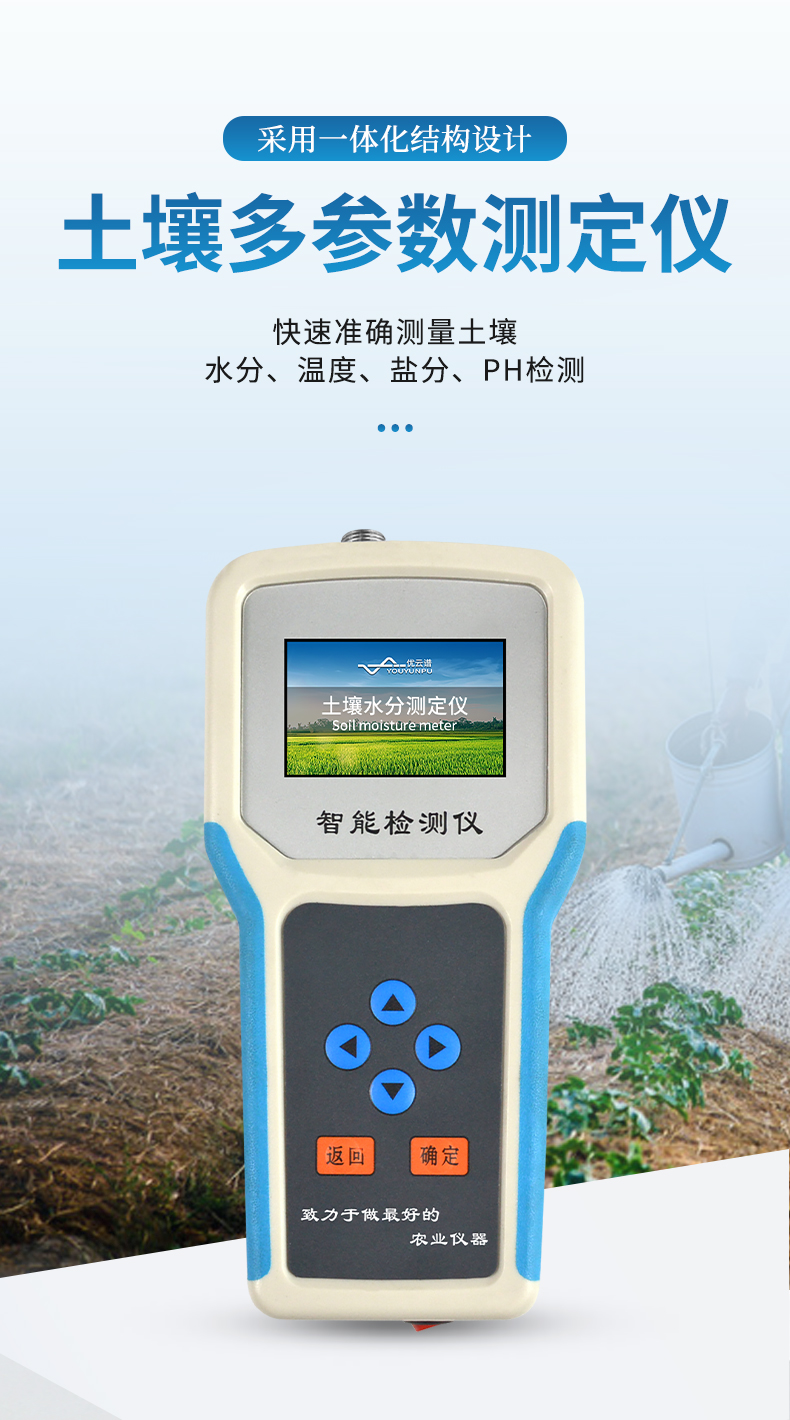 土壤多參數(shù)采用一體化結(jié)構(gòu)設(shè)計,可快速準(zhǔn)確測量土壤中含水量、溫度、電導(dǎo)率(鹽分),可對多處樣地、不同土壤深度的水分含量溫度鹽分進(jìn)行快速檢測和長期連續(xù)監(jiān)測。