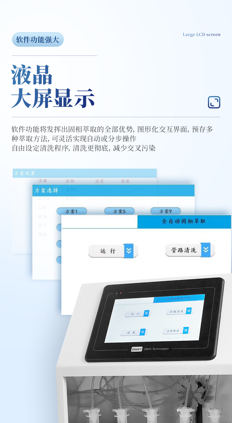 3. SPE全自動(dòng)固相萃取儀采用數(shù)控泵控速,、平穩(wěn)的控制流速,保證了樣品回收率;