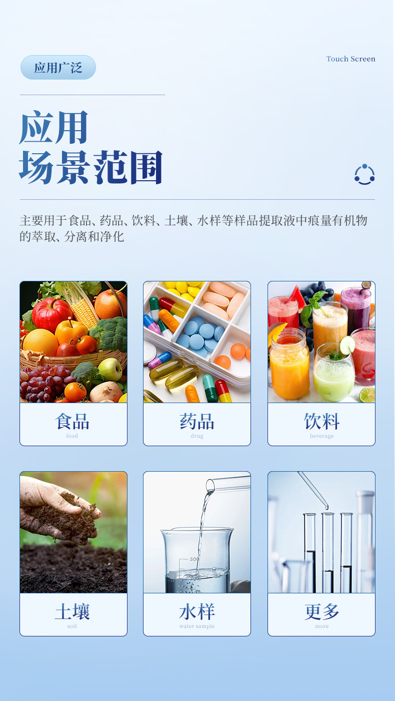 全自動(dòng)固相萃取儀是針對(duì)目前實(shí)驗(yàn)室前處理樣品自動(dòng)化程度高特點(diǎn)按照全新設(shè)計(jì)理念推出的一款全自動(dòng)固相萃取系統(tǒng)。主要用于食品、藥品、飲料、土壤、水樣等樣品提取液中痕量有機(jī)物的萃取、分離和凈化。
