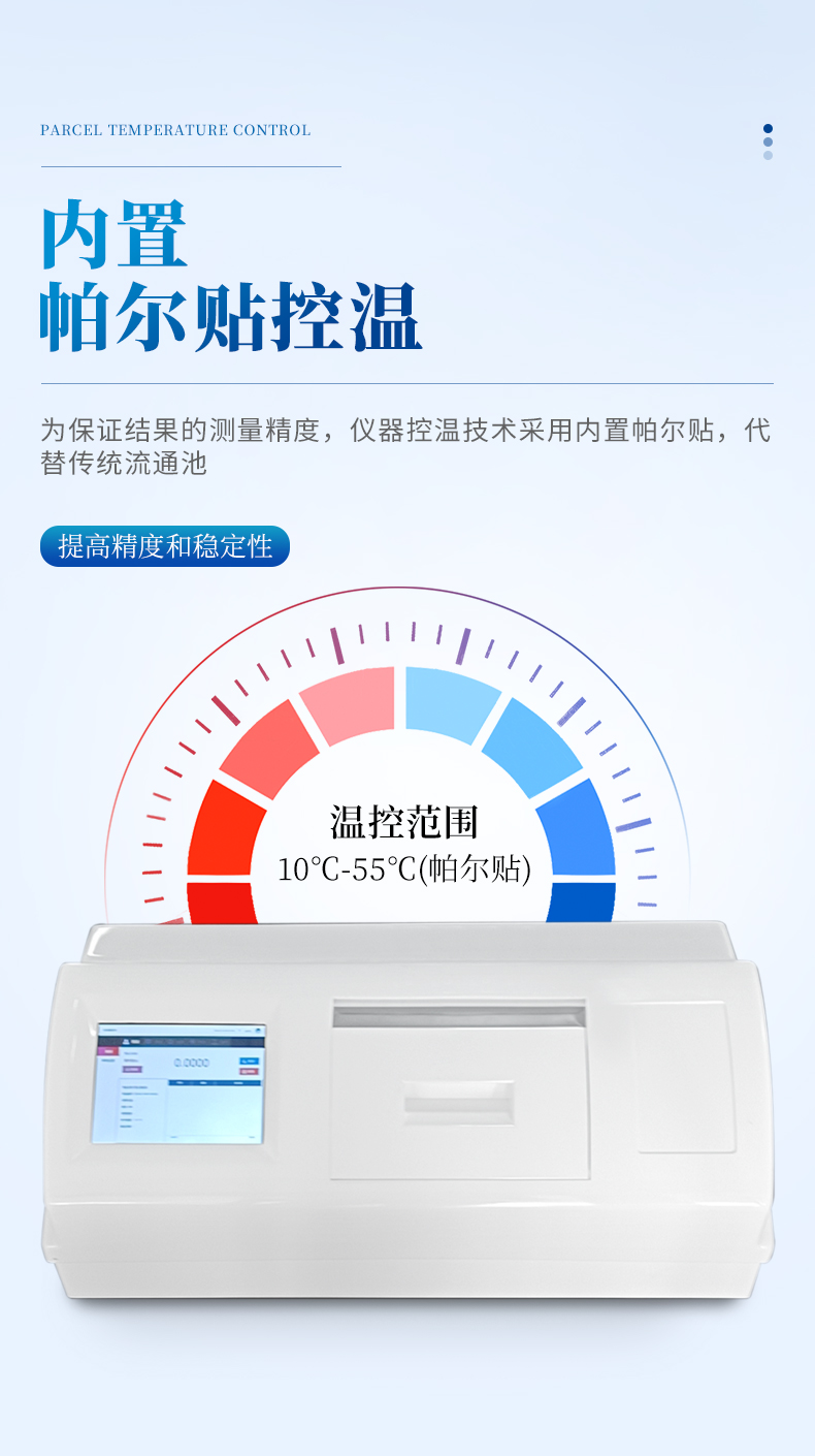 2:為保證結果的測量精度,儀器控溫技術采用內置帕爾貼,代替傳統流通池;