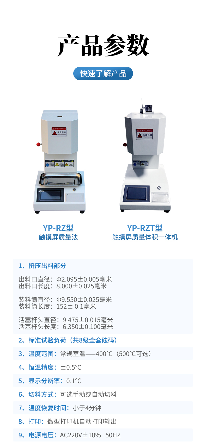 2、熔融指數測定儀(質量法體積法一體機)原理:熔體流動速率系指熱塑性塑料在一定溫度和負荷下,熔體每10min通過標準口模的重量或體積,用MFR來表示,其數值可以表示熱塑性塑料在熔融狀態時的粘流特性。