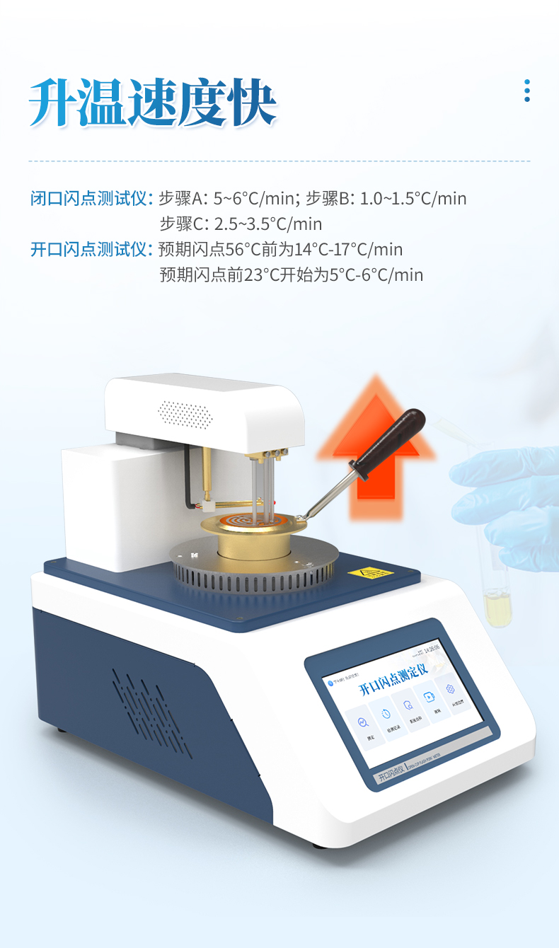 升溫速度 預(yù)期閃點(diǎn)56℃前為14℃-17℃/min;預(yù)期閃點(diǎn)前23℃開(kāi)始為5℃-6℃/min.