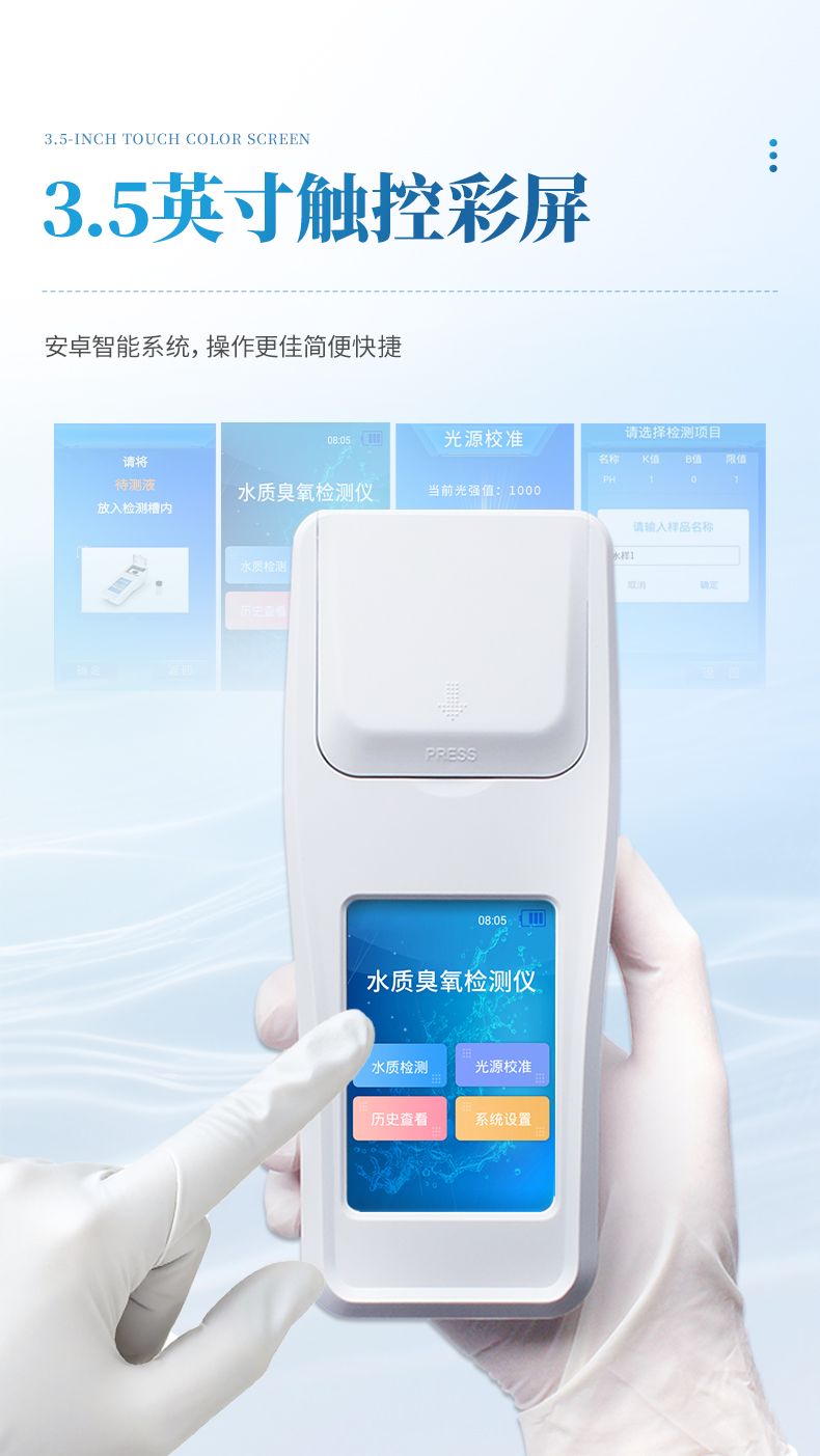 便攜式水質(zhì)臭氧檢測儀器配合快速顯色檢測試劑,可“快速、簡單、準(zhǔn)確、穩(wěn)定”進(jìn)行測量,擁有精美的外觀造型,簡單的操作界面,準(zhǔn)確的檢測系統(tǒng),幫助用戶獲得精細(xì)的數(shù)據(jù),可更準(zhǔn)確、有效的分析水體狀況,提前預(yù)防,及時避免損失。