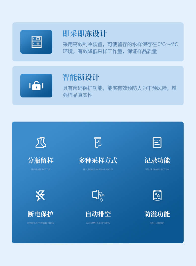 8、水樣冷藏功能:采用高效制冷裝置,可使留存的水樣保存在 0℃~4℃環境;