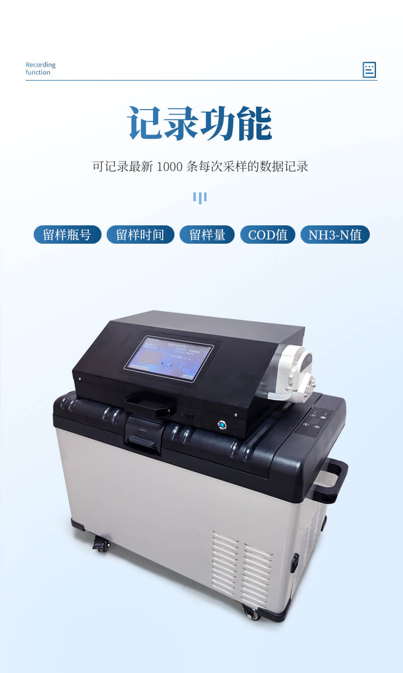 3、記錄功能:可記錄每次采樣的留樣瓶號、留樣時間、留樣量、COD 值和 NH3-N 值,可記錄最新 1000 條數據記錄;