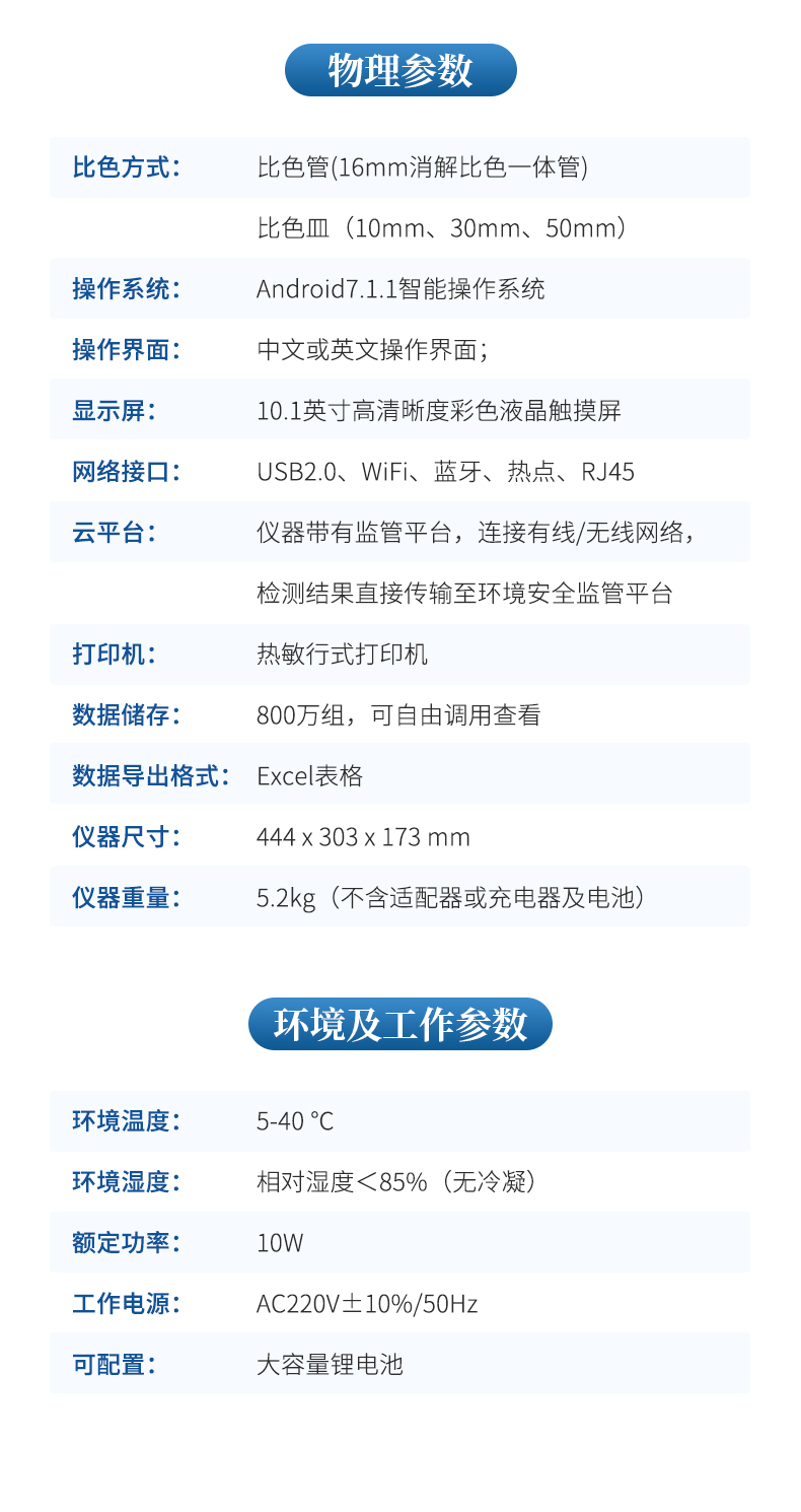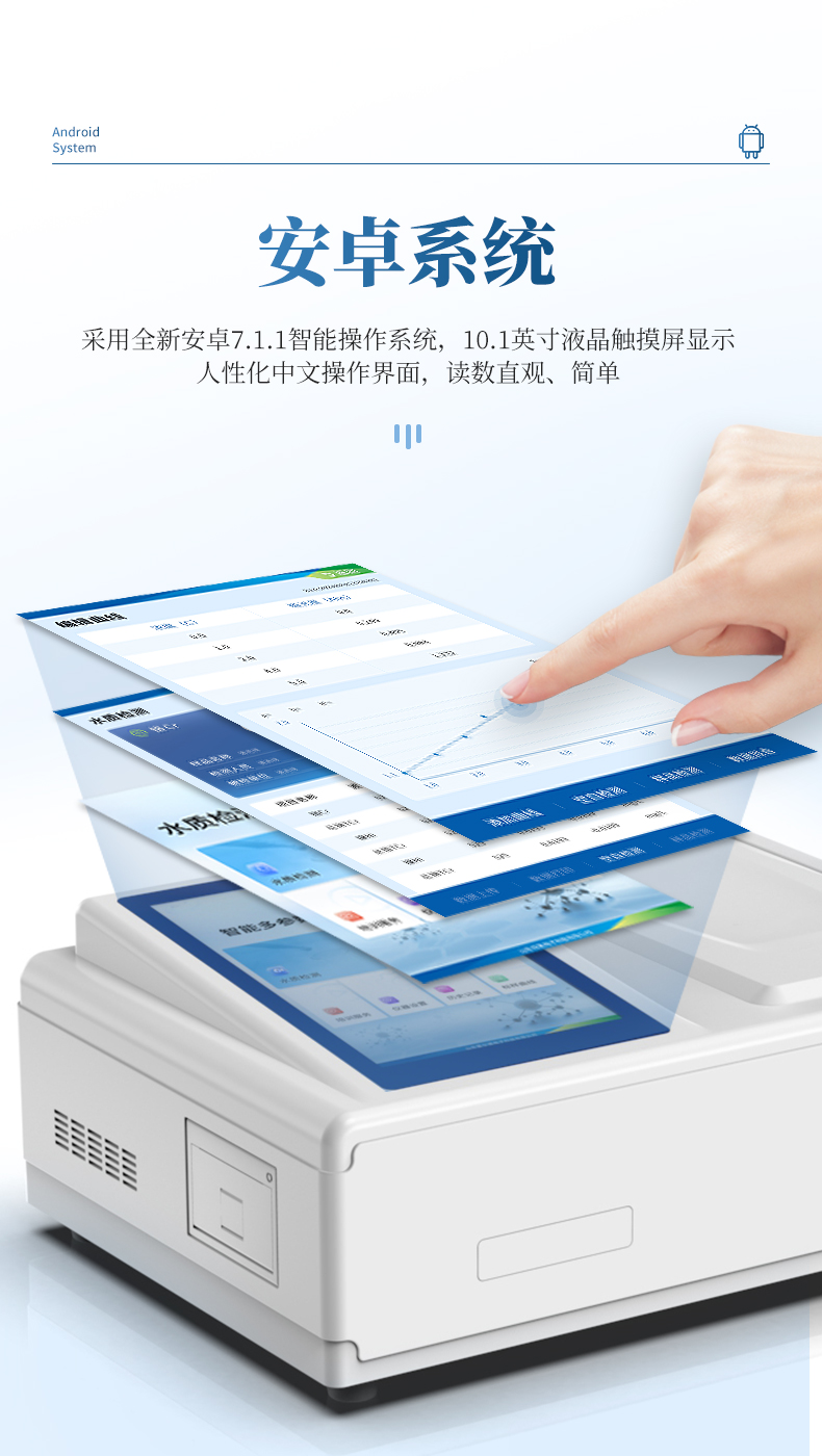 主要檢測水質(zhì)六價鉻重金屬含量指標(biāo),兼具智能數(shù)據(jù)分析功能,圖表、列表顯示數(shù)據(jù),分析一目了然;高清晰度彩色液晶觸摸顯示屏,Android智能操作系統(tǒng),中文顯示界面,中英文鍵盤,人性化操作,使用更簡單。