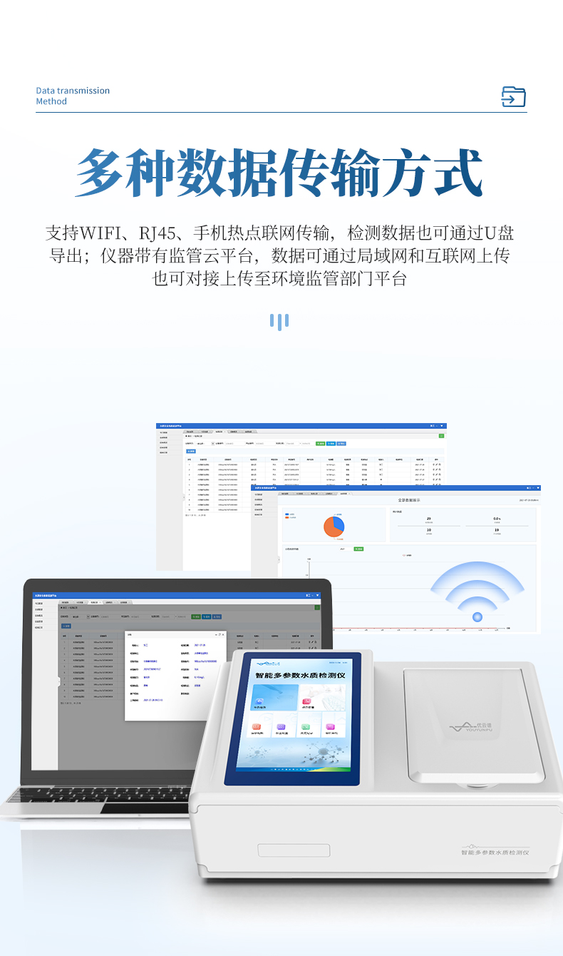 云平臺:儀器帶有監(jiān)管平臺,連接有線/無線網(wǎng)絡(luò),檢測結(jié)果直接傳輸至環(huán)境安全監(jiān)管平臺。