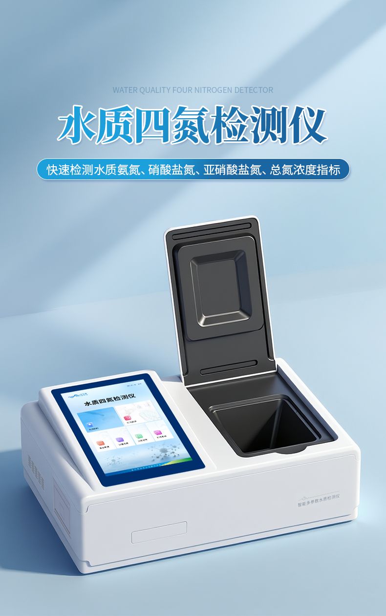 手持式水質四氮檢測儀主要檢測水體中的氨氮、硝酸鹽氮、亞硝酸鹽氮、總氮含量;參考國標以及環境標準研發設計制造,儀器配備高清晰度彩色液晶觸摸顯示屏,Android智能操作系統,中文顯示界面,中英文鍵盤,人性化操作,使用更簡單;