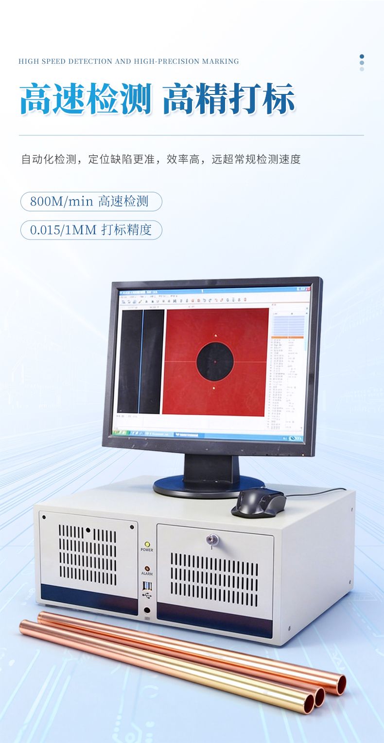 具有相對獨立的檢測通道,可同時驅動兩款不同形式的檢測探頭(由絕對和差動線圈構成的組合式探頭等),兩個檢測通道同時進行數據采集,用于檢出金屬管、棒生產中出現的縱向和橫向裂紋缺陷。用于焊管在線、離線檢測時,儀器對金屬管、棒、線材的裂紋、暗縫、氣孔、夾雜和開口裂紋等缺陷具有很高的檢測靈敏度。對生產過程中,因焊機故障而造成產品的緩變傷、長道傷均能可靠檢出。