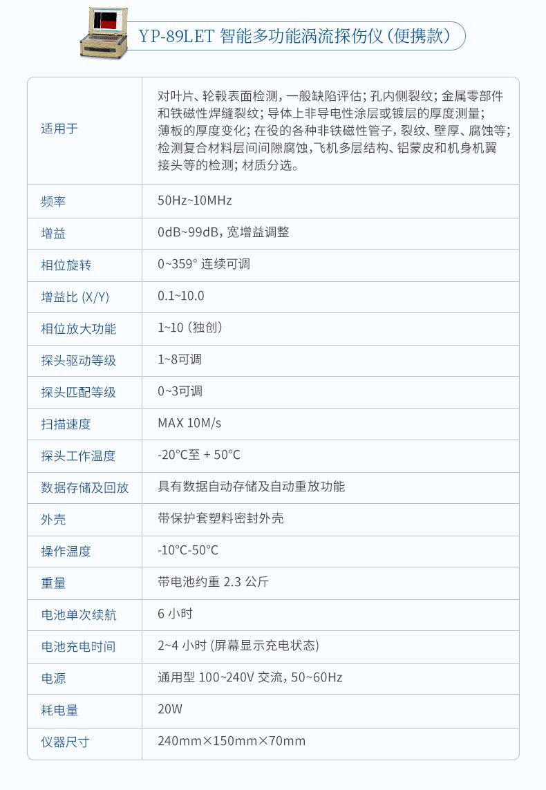 【產品簡介】1、便攜款,帶電池; 2、具有渦流探傷全部功能又有電導率、測厚等功能